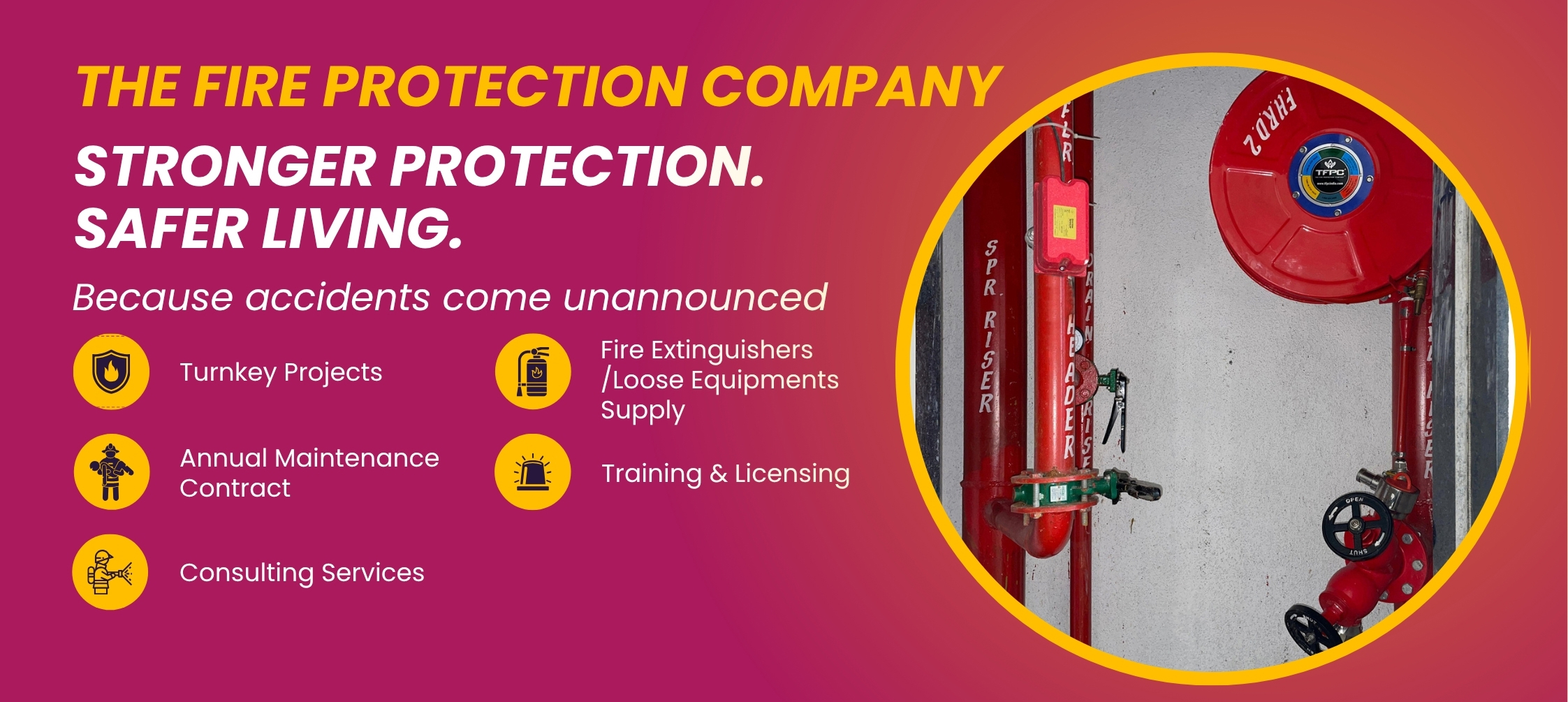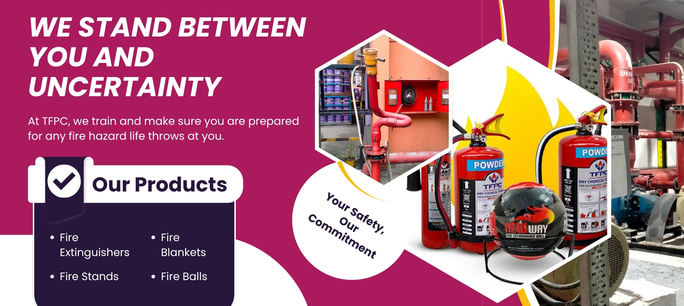 At The Fire Protection Company (TFPC), we are committed to safeguarding lives and properties with reliable, world-class fire safety solutions. We specialize in the supply, design, integration and execution of fire safety equipment and fire safety accessories along with professional services such as AMC (Annual Maintenance Contracts), fire NOC compliance along with requisite permissions, and fire safety training.